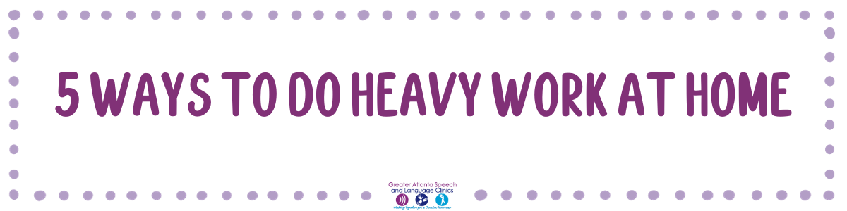 Heavy work within therapy sessions involves proprioceptive activities that provide some kind of pushing or pulling resistance to the body. It can be done with body weight activities or with weighted objects. However, doing these things once or twice weekly in therapy sessions alone won’t yield long-lasting results — we need you to do them at home, too!